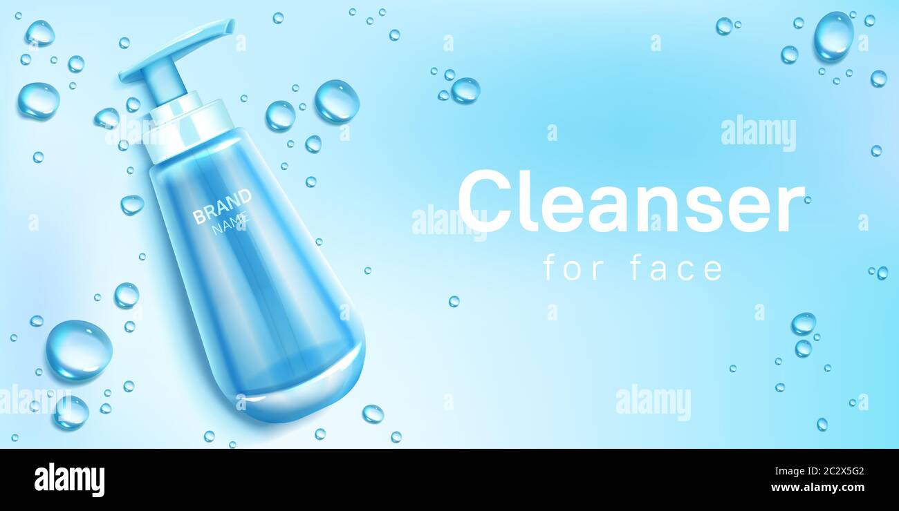 Cleanser For Face Cosmetics Bottle Mockup Banner Skin Care Cosmetic Pump Tube On Blue Background With Water Drops Facial Cleansing Product Packaging Stock Vector Image Art Alamy